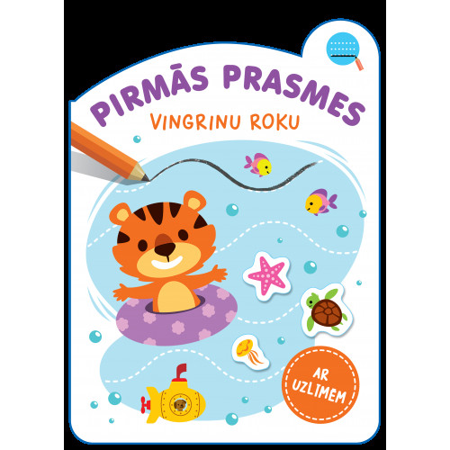 Vingrini rociņu, pārvelkot horizontālās līnijas, zigzaglīnijas, pārvelc apļus un vingrinies zīmēt cilpas uz augšu! Rotaļājies ar uzlīmēm! Drīz jau pratīsi rakstīt arī burtus. Nedot bērniem, kas jaunāki par 3 gadiem, jo satur sīkas detaļas - aizrīšanās risks!